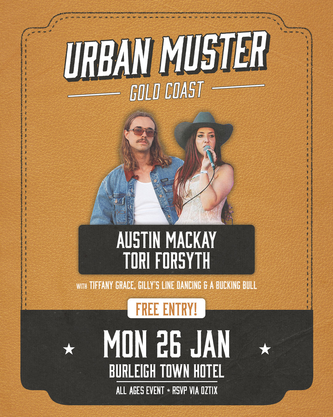 Urban Muster Gold Coast is back and rolling into town on Monday, January 26th, bringing a massive country party to Burleigh Town Hotel!