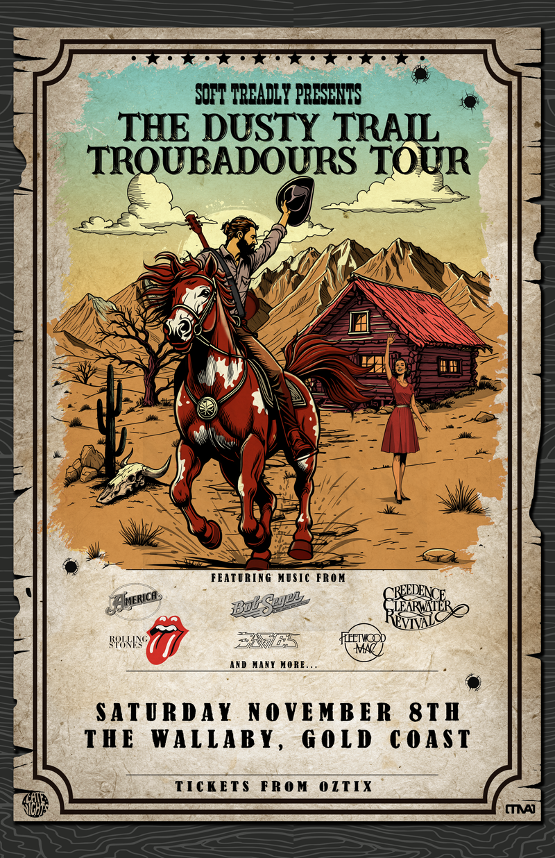 Fresh from their highly acclaimed Talking Heads and David Bowie tribute tours, Brisbane’s own Soft Treadly return with a brand-new setlist designed to get you hollering, two-stepping, and singing along from the first chord to the final encore.